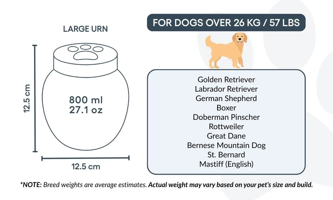 With full personalisation options, you can customise your personalised pet urn with your dog’s unique story—because every memory deserves a special place.