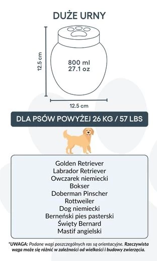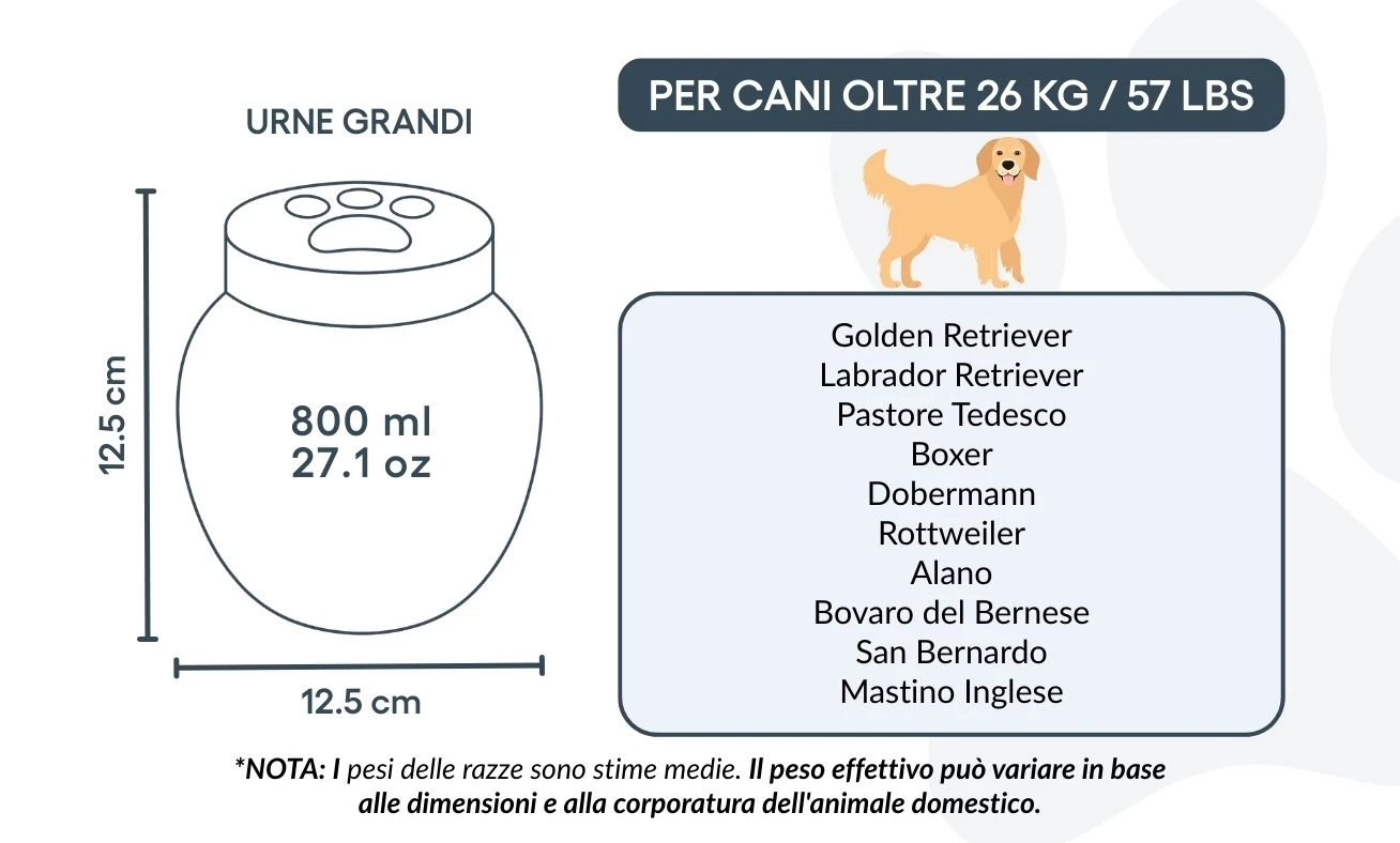 Available in multiple sizes to accommodate dogs of all breeds, this photo urn is ideal for pet cremation and remembrance.