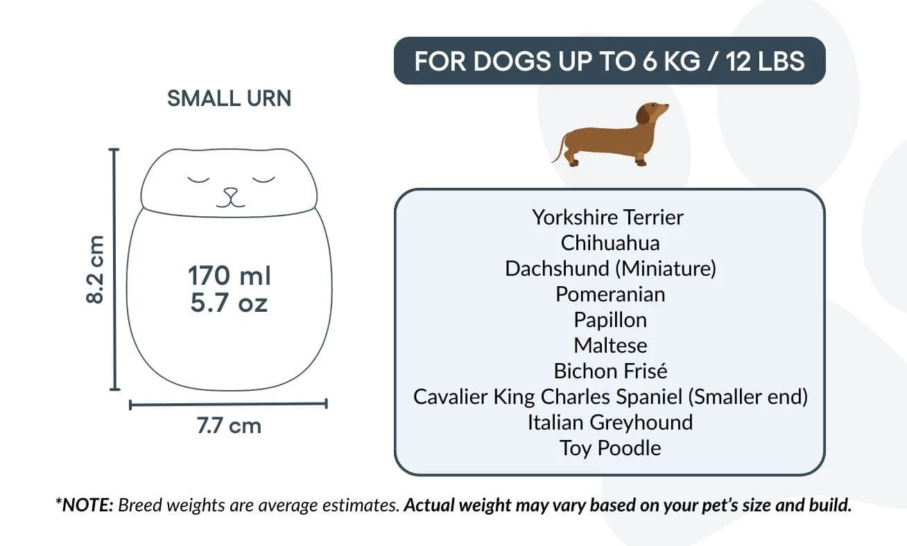 Expertly made from smooth ceramic, this cremation urn for pet ashes is as durable as it is delicate. The secure lid ensures ashes are safely stored, making it a meaningful addition to your home. Ideal for use as a pet memorial or keepsake urn, this personalised dog ceramic pet urn is perfect for indoor settings—adding peace and warmth to any remembrance space.
