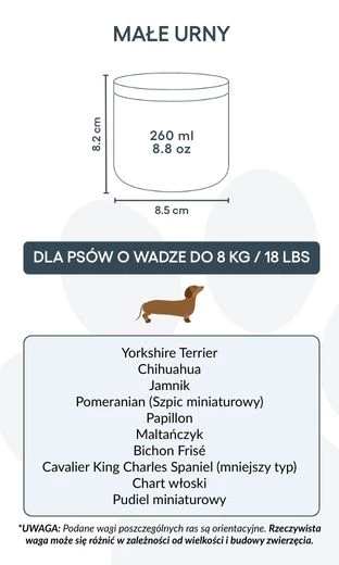 Small: 8.5 cm (W) x 8.2 cm (H) x 8.5 cm (L) | 260ml / 8.8oz |for dogs up to 8kg / 18lbs