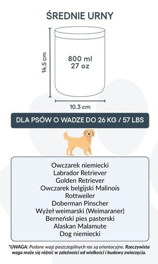 Available in two practical sizes to suit small and medium dogs, it offers a respectful and personal way to say goodbye. A thoughtful option for pet cremation, this urn is a lasting keepsake for any dog owner.