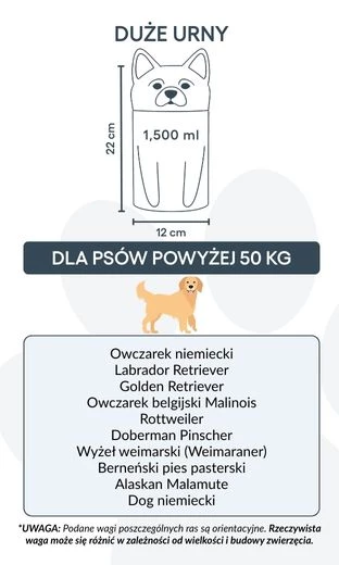 Available in three sizes for breeds up to 50 kg, this personalised dog urn offers space for custom text and is ideal for cremation ashes. The secure, sculpted form ensures safe storage and a timeless look for indoor display.