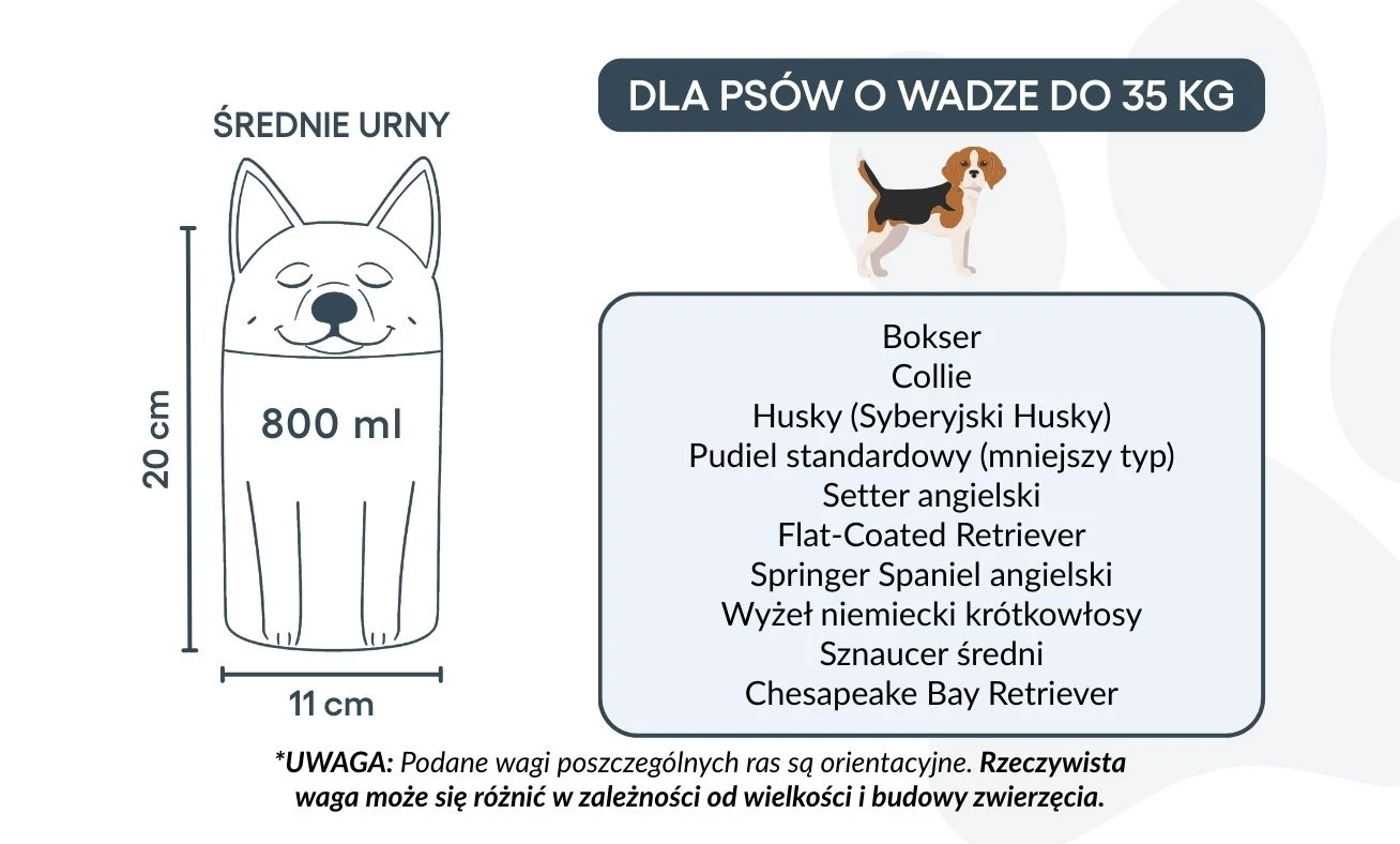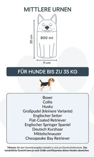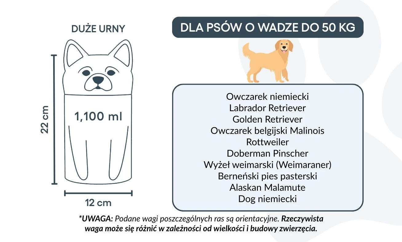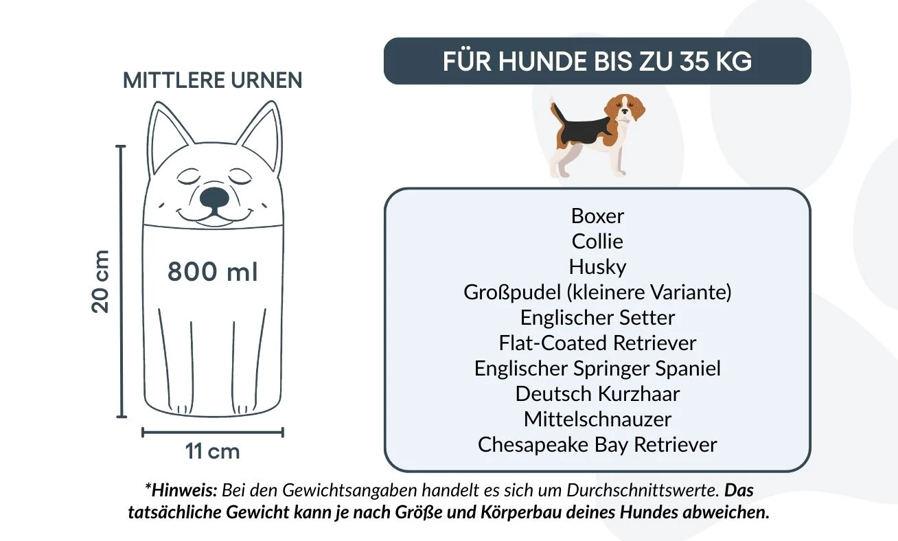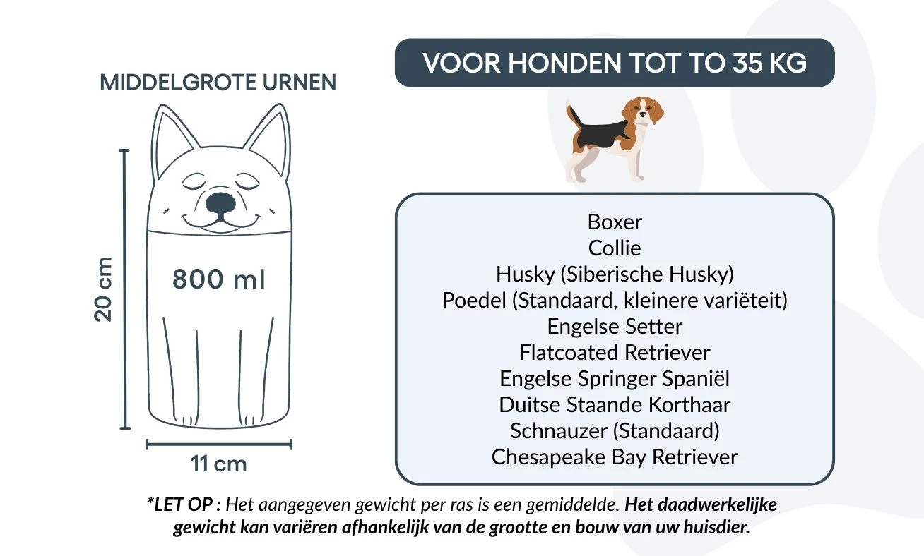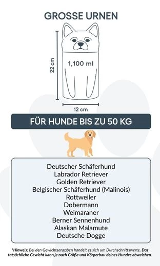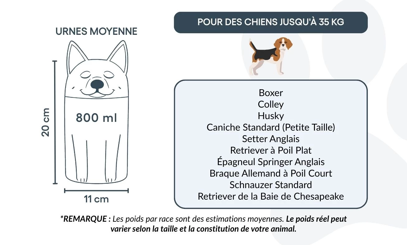 Note: Volume estimates are based on average pet cremation yields. Please consider your pet’s weight and build when choosing an urn.