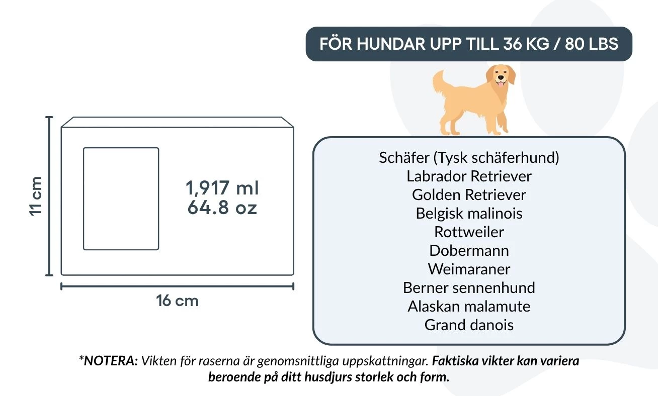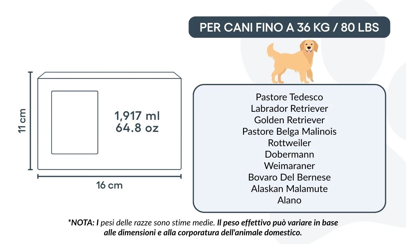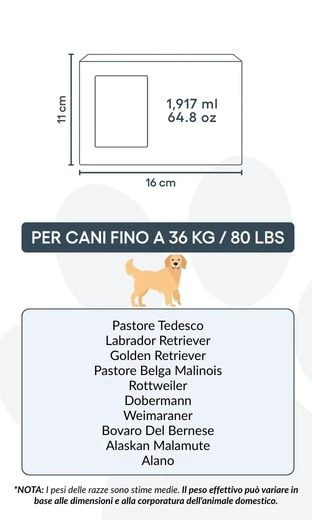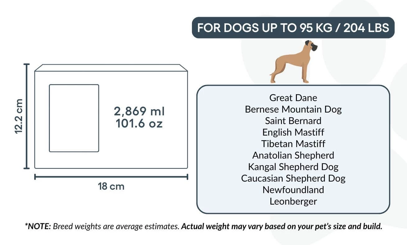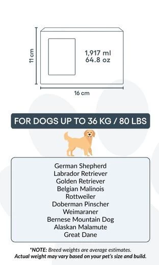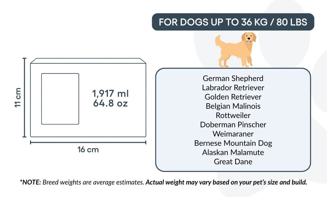 Size / Urn Capacity: 16 cm (W) × 11 cm (H) × 11 cm (L) | 1,917 ml / 64.8 oz / For pets up to 36 kg / 80 lbs
