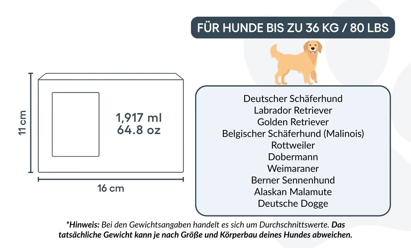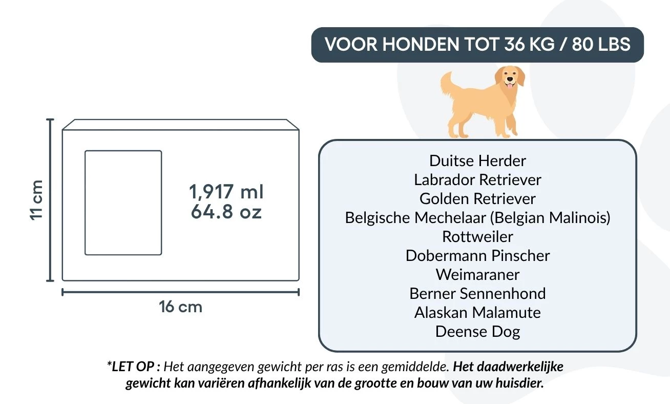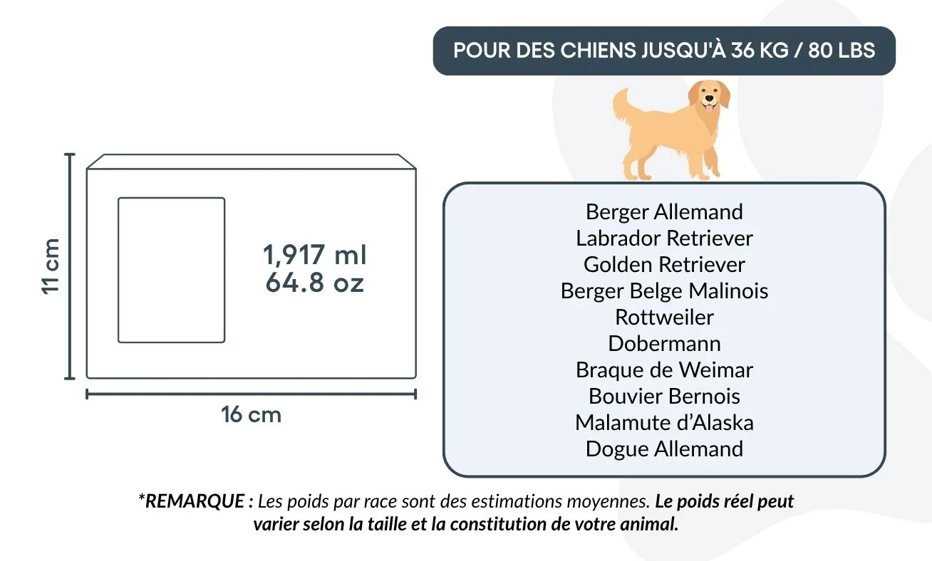 Common breeds that typically fit: Labrador Retriever, Golden Retriever, German Shepherd, Boxer, Border Collie, Husky, Staffordshire Bull Terrier, Rottweiler