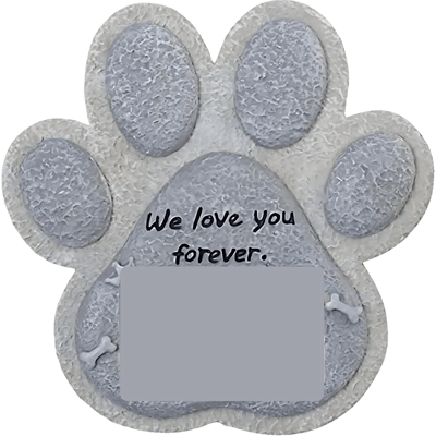 Commemorate the life of your beloved dog with this Paw-Shaped Dog Memorial Stone with Photo & Tribute, a thoughtful way to keep their memory alive in your garden. Designed in the shape of a paw, this heartfelt pet memorial stone features a secure photo frame, engraved message, and charming bone accents—creating a personal tribute to a much-loved companion.