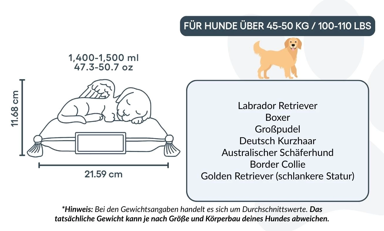 This Sleeping Angel Dog Memorial Urn with Elegant Cursive Name & Dates, a touching and elegant way to preserve their ashes and legacy. This thoughtfully designed pet cremation urn features a peaceful angel pup resting on a decorative cushion, representing eternal love and gentle rest.